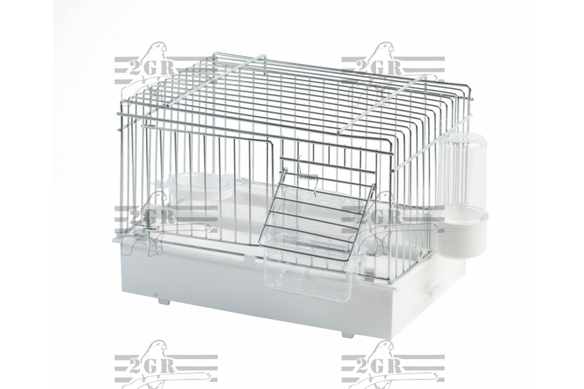 Art.055 závesná klietka pre dokŕmenie mláďat rodičmi. Obsahuje vonkajšie a vnútorné kŕmidlo, napájačku a bidlo.